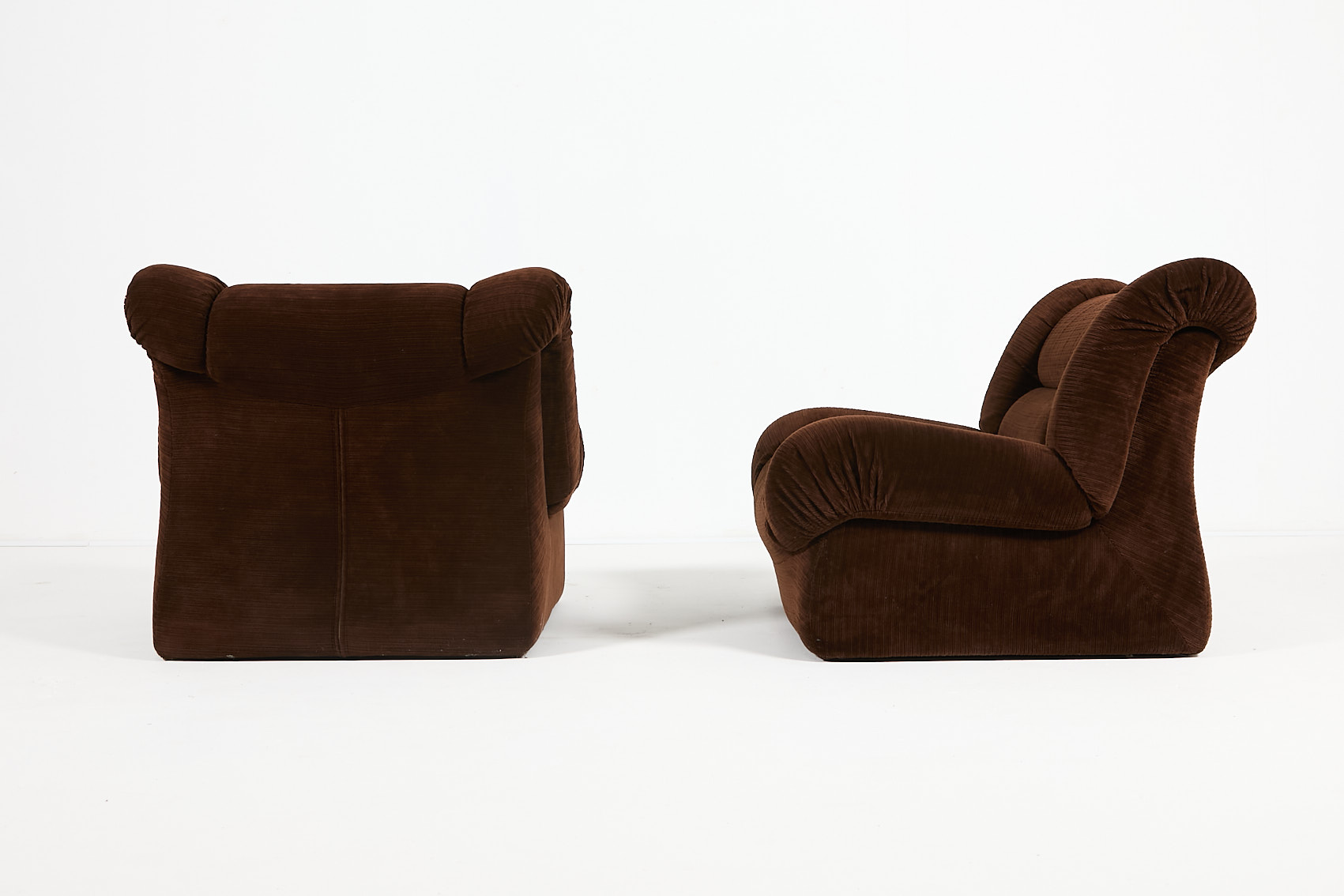 Vintage sculptural pair of brown velvet lounge chairs from 1970’s produced by Mimo Padova, Italy.