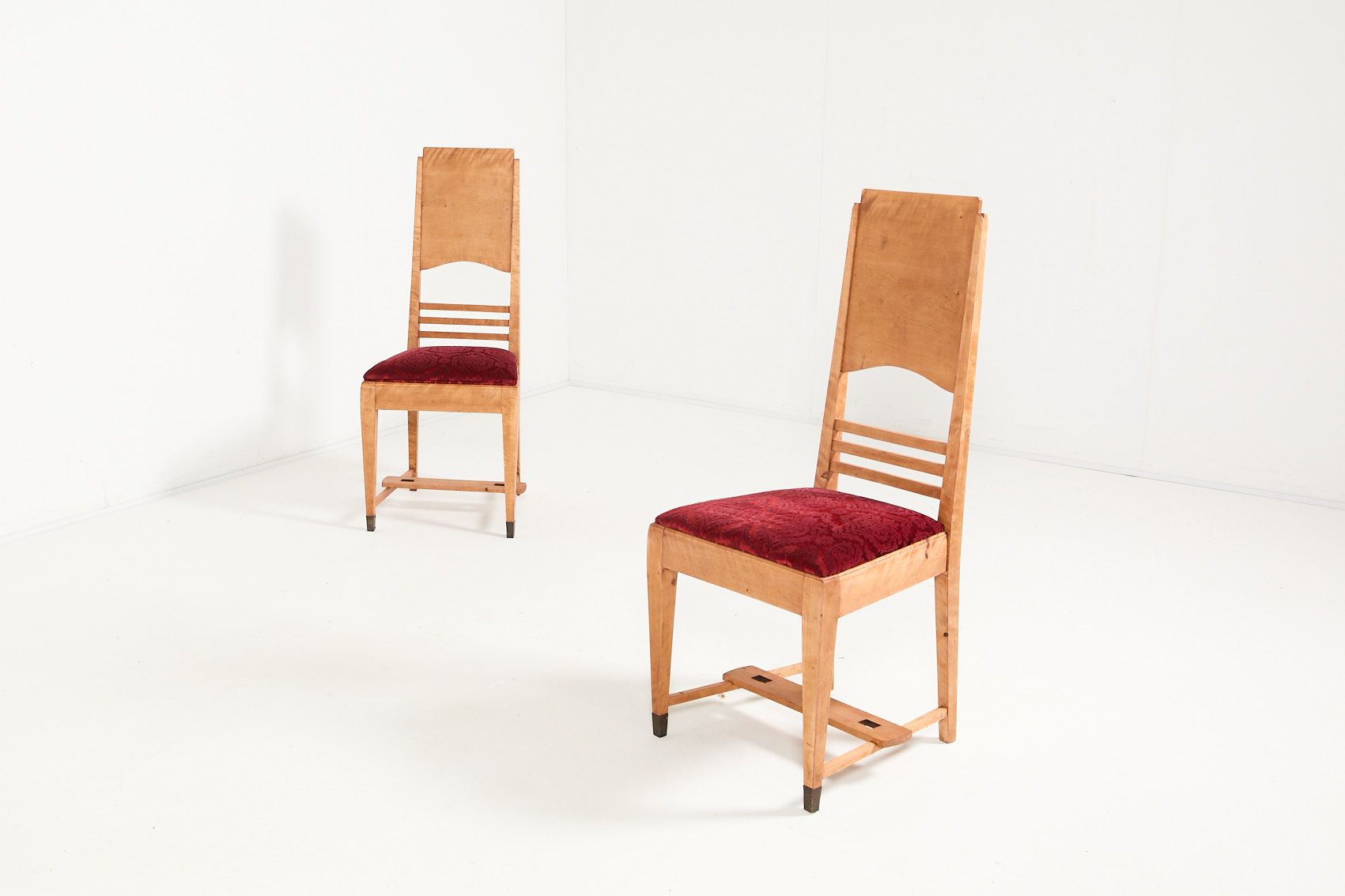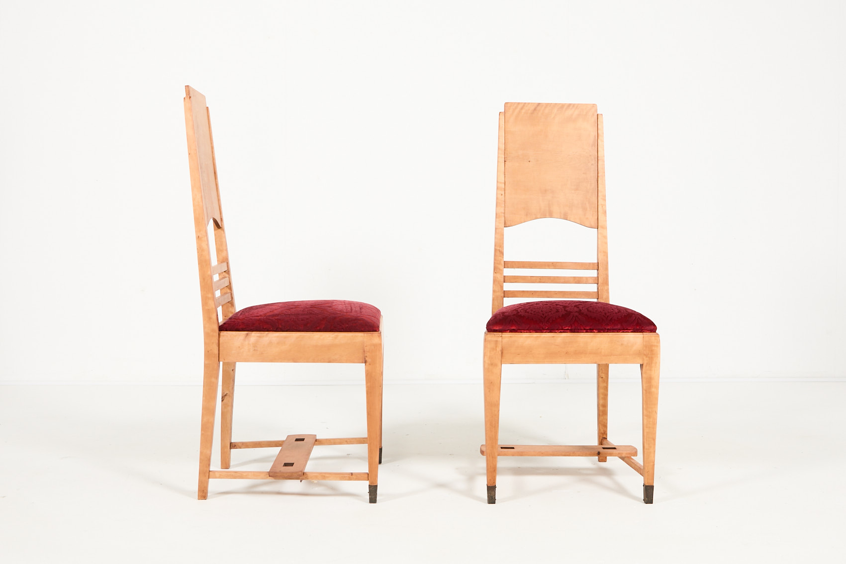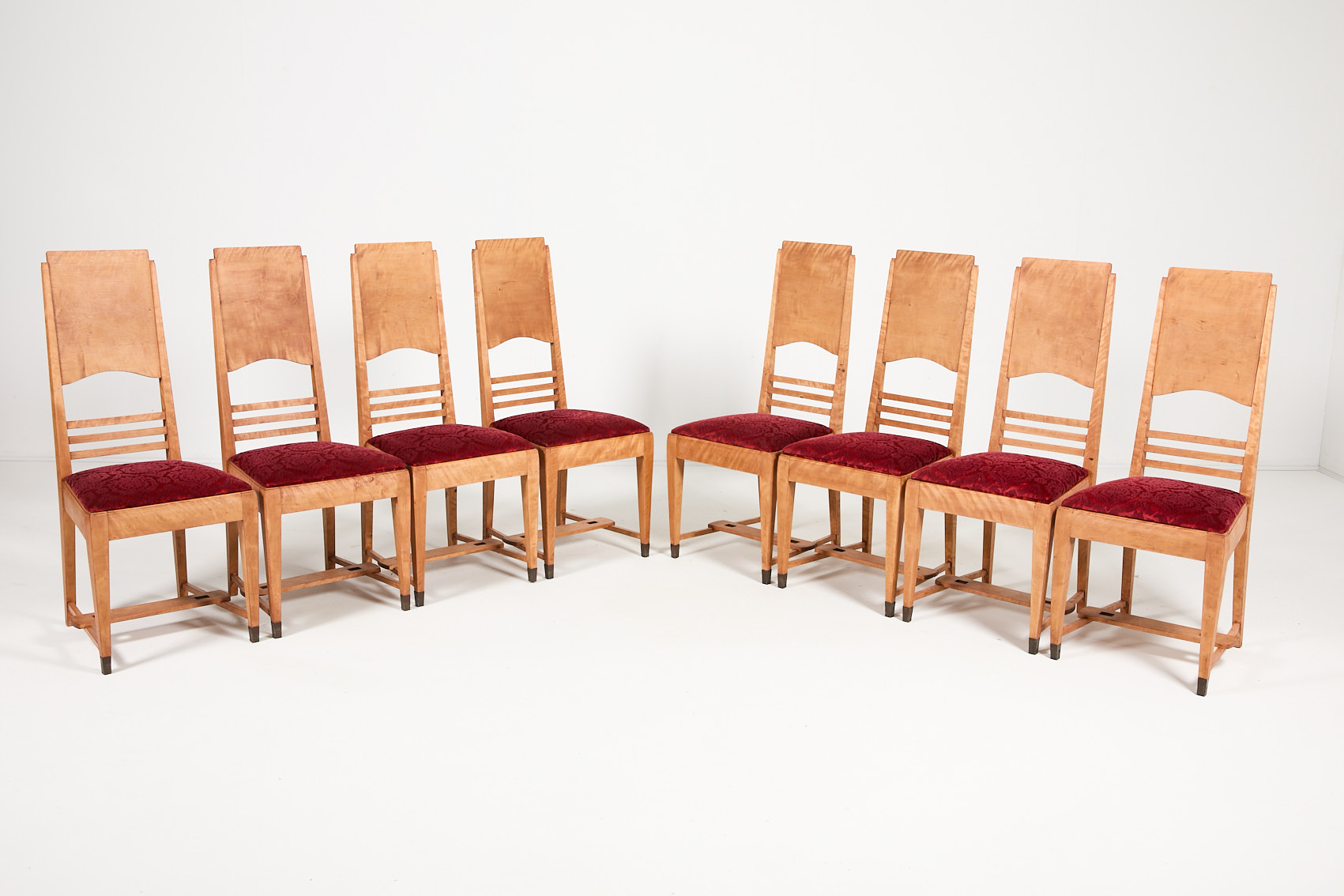 Unique set of 8 chairs from Alfred Grenander, 1900’s Sweden. Beechwood frame with fabric upholstery seat. Alfred Grenander was an important Swedish architect, who became one of the most prominent engineers during the first building period of the municipal railway network in Berlin.