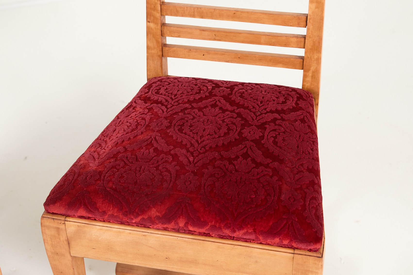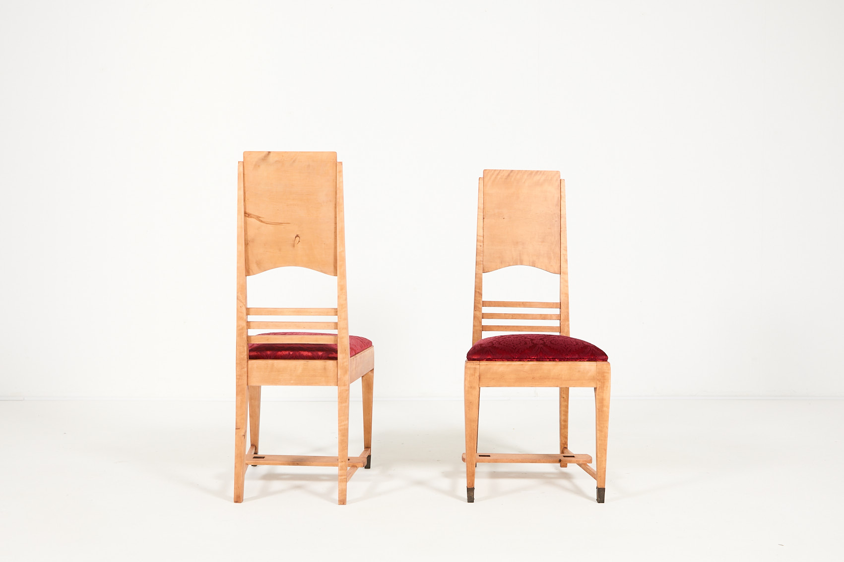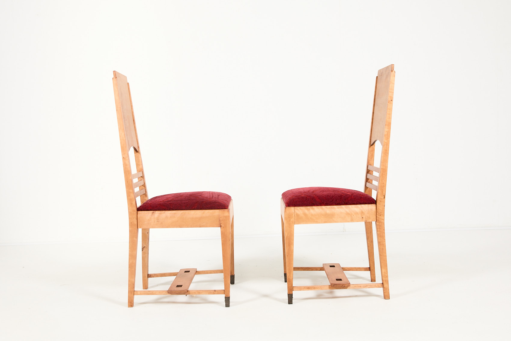 Unique set of 8 chairs from Alfred Grenander, 1900’s Sweden. Beechwood frame with fabric upholstery seat. Alfred Grenander was an important Swedish architect, who became one of the most prominent engineers during the first building period of the municipal railway network in Berlin.